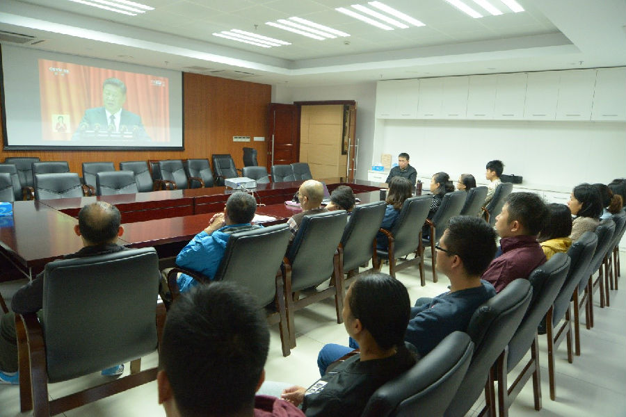 會議上,全體黨員職工佩戴黨徽,認(rèn)真聆聽習(xí)近平總書記作的重要講話。這次大會的主題是:不忘初心,牢記使命,高舉中國特色社會主義偉大旗幟,決勝全面建成小康社會,奪取新時代中國特色社會主義偉大勝利,為實現(xiàn)中華民族偉大復(fù)興的中國夢不懈奮斗。黨的十九大是在全面建成小康社會關(guān)鍵階段、中國特色社會主義發(fā)展關(guān)鍵時期召開的一次重要大會,對鼓舞和動員全黨全國各族人民繼續(xù)推進(jìn)全面建成小康社會、堅持和發(fā)展新時代中國特色社會主義具有重大意義。