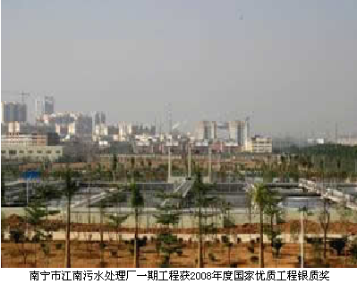 南寧市江南污水處理廠是“十一五”后三年廣西城鎮(zhèn)污水處理設(shè)設(shè)的重點工程,也是全區(qū)節(jié)能減排的重點工程。江南污水處理廠的總體規(guī)模為96萬m3/d,采用分期建設(shè)的方式。根據(jù)不同時期的污水量情況分別進行24萬m3/d、48萬m3/d、96萬m3/d規(guī)模的建設(shè)。其中一期工程設(shè)計規(guī)模為24萬m3/d,處理深度為二級處理,是廣西規(guī)模最大的污水處理廠,由我公司負(fù)責(zé)監(jiān)理,并獲得了2008年火車頭優(yōu)質(zhì)工程一等獎和2008年度國家優(yōu)質(zhì)工程銀質(zhì)獎兩項大獎。