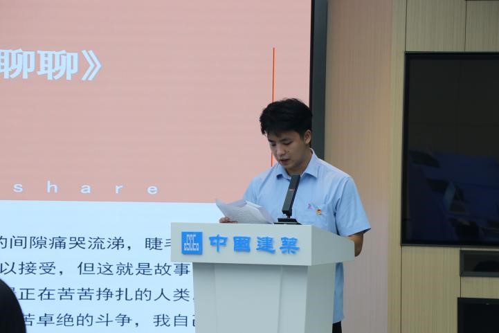 活動首先由承辦單位中建八局南方公司基礎設施分公司代表廖思程同志為活動致辭。他提到,讀書不是為了滿足“書中自有黃金屋,書中自有顏如玉”的功利心,而是通過實現(xiàn)自身內(nèi)在的淡定和從容,達到自我和外在的容納與協(xié)調(diào),從而遇見更好的自己。