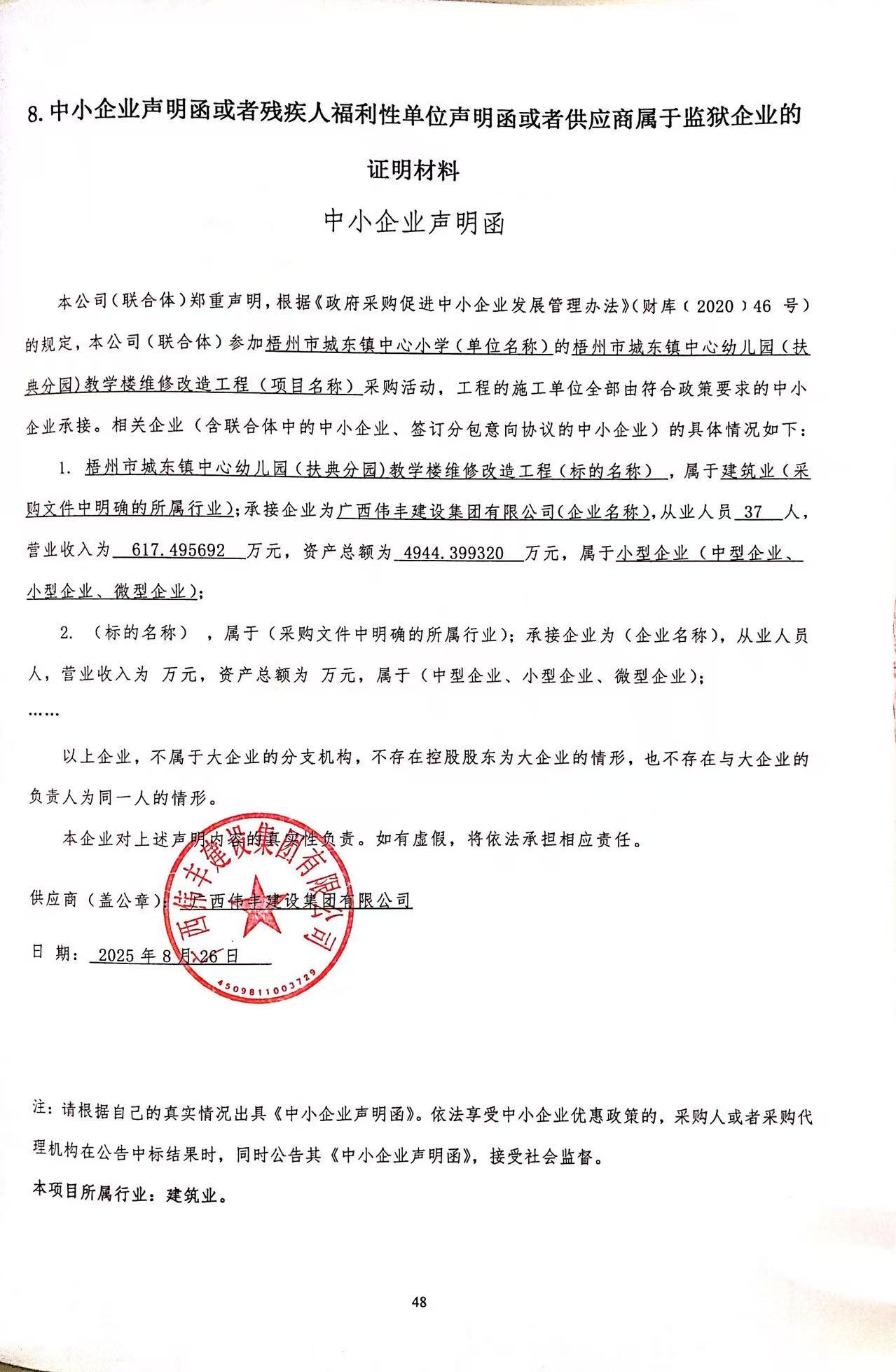 供應(yīng)商名稱:廣西偉豐建設(shè)集團有限公司